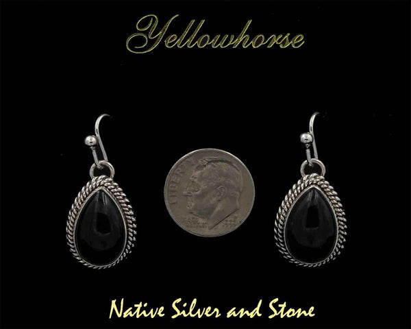 Artie Yellowhorse, Navajo Beautiful handmade earrings featuring vertical oval onyx with two layers of twisted wire around the perimeter. These are medium large earrings (please note size - below), if...