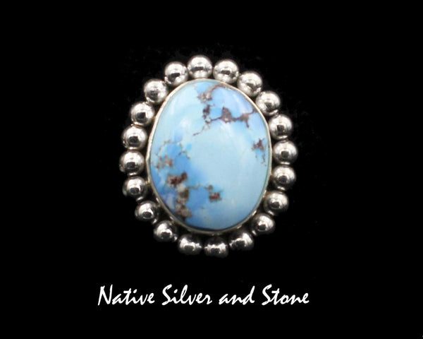 Artie Yellowhorse, Navajo Gorgeous oval of natural Royston turquoise from Artie. This handmade ring has a perimeter of sterling silver beads. Bright, crisp with beautiful matrix. Click here to see other items...