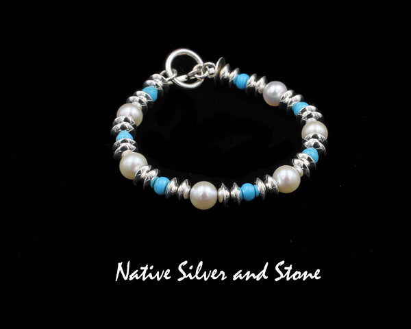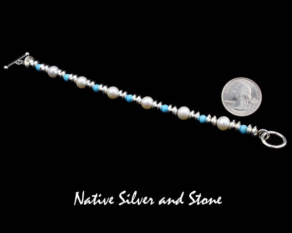 What a darling link bracelet. A bright combination of pearls and both turquoise & silver beads. You can expect to see a bit more of Desiree's beadwork.