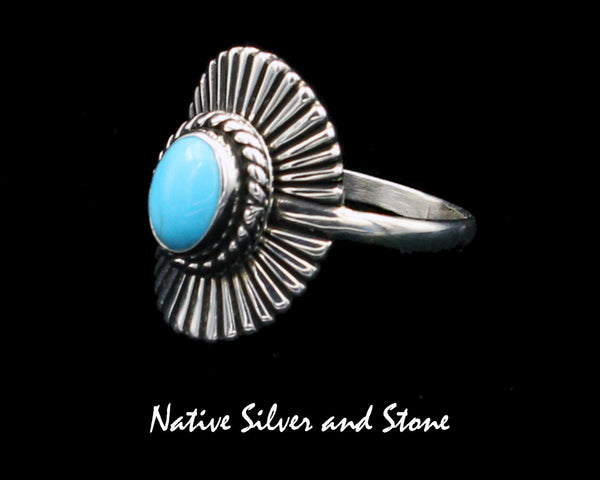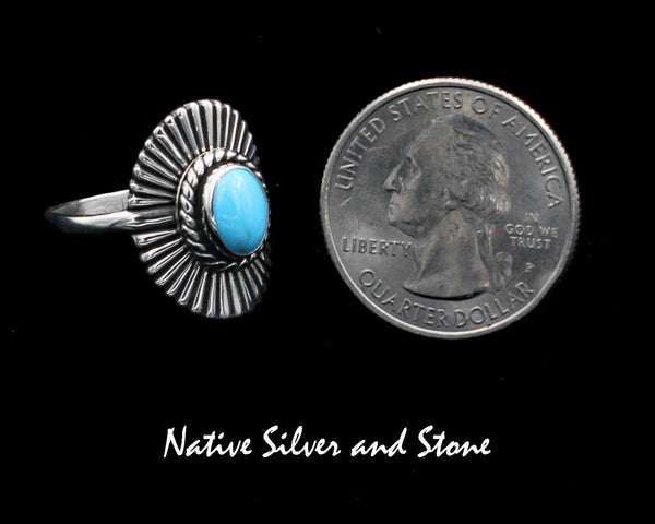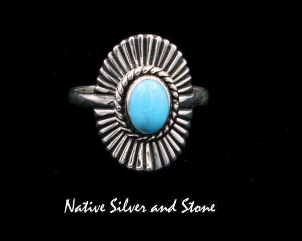 Tim Bedah (Deceased) - Navajo Jewelry ***One- of-a-Kind*** Eye catching handmade ring featuring a beautifully matrixed vertical rectangle of turquoise to the greenish side. This is made with the heavy...