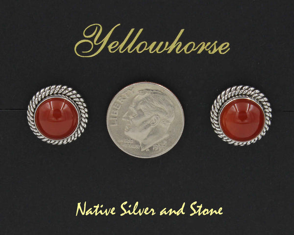 Signature piece of Yellowhorse, handmade double twist silver perimeter with a round domed piece of carnelian. Click here Yellowhorse Double Twist Collection for other styles & sizes.