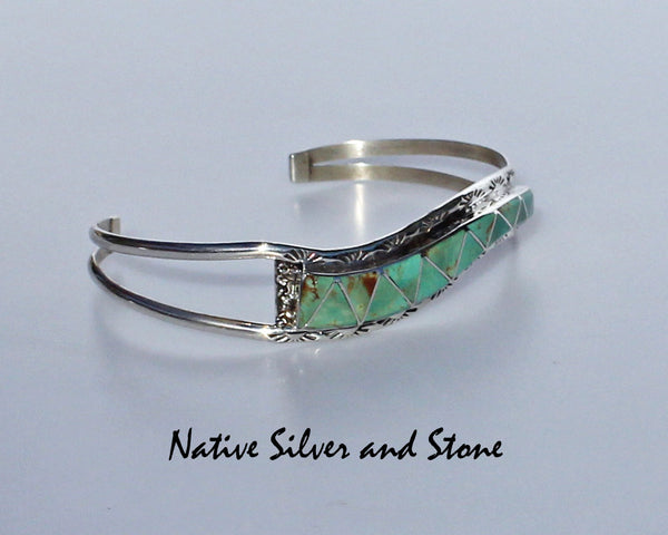 This is a lovely example of the Seoutewas inlay work. Depending on the size of your wrist, it can be worn tight around the wrist or as a loose drop-down bracelet that slides onto the top of the hand.