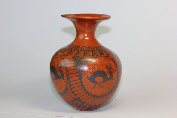 Gerardo is known for his Mimbres work. I really fell for this piece because of the rabbit. Handmade, NOT spun on pottery wheel. Mimbres rabbit design.